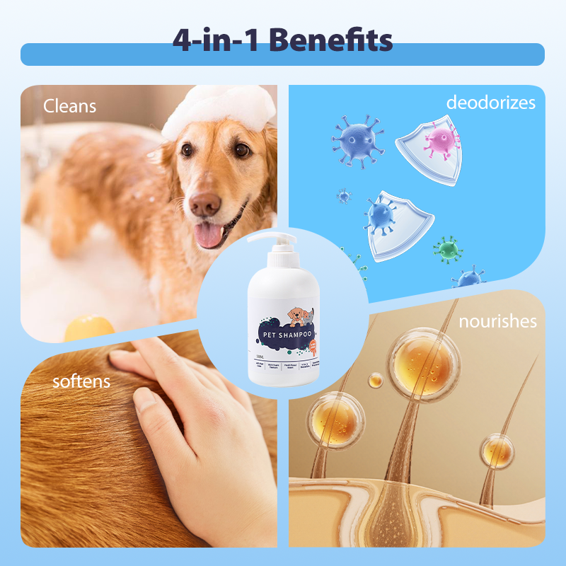 Пакетът включва: 1* нежен и освежаващ шампоан за домашни любимци „всичко в едно“