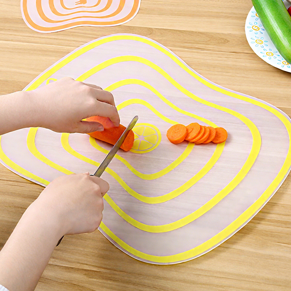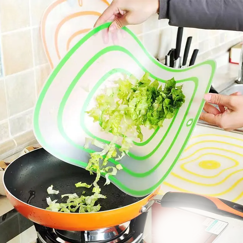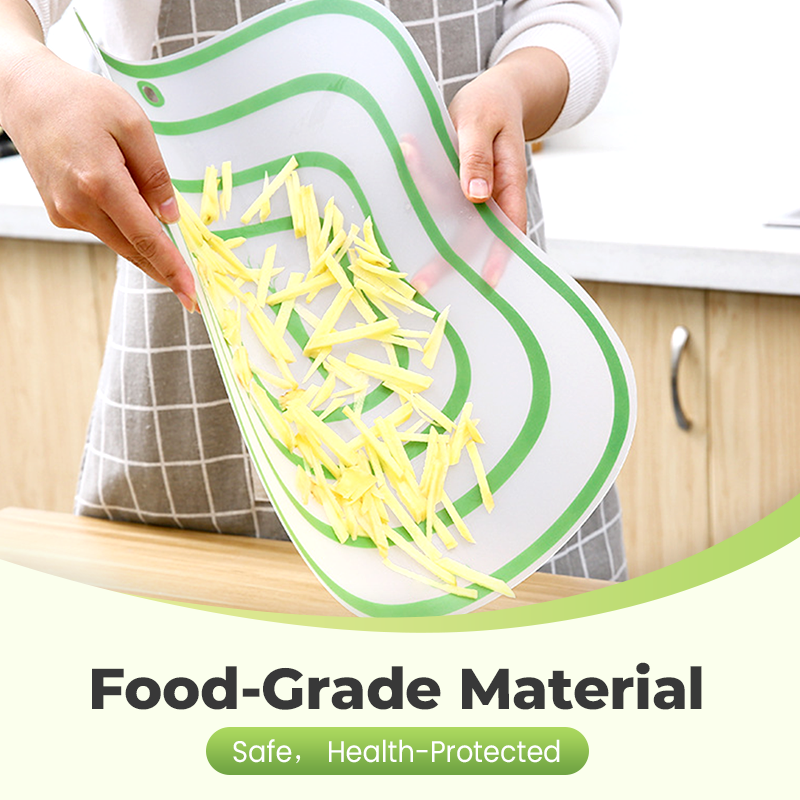 ГЪВКАВ ДИЗАЙН, ЛЕСНО ПРЕХВЪРЛЯНЕ НА СЪСТАВКИТЕ: Леко гъвкава, за да се огъва без усилие, дъската ви позволява лесно да прехвърляте нарязаните съставки директно в тенджери, тигани или купи. Намалява разхвърлянето и отпадъците, като оптимизира процеса на готвене за по-бързо и по-ефективно приготвяне на храната.