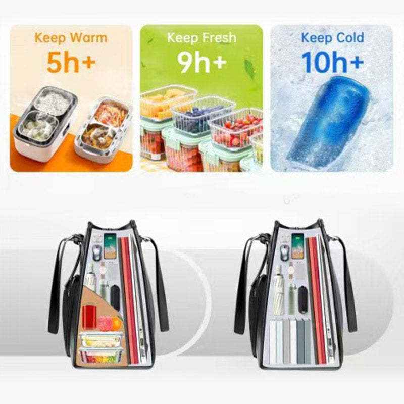 Елегантна, професионална чанта, която се превръща в напълно изолирана чанта за обяд със скрито отделение.
