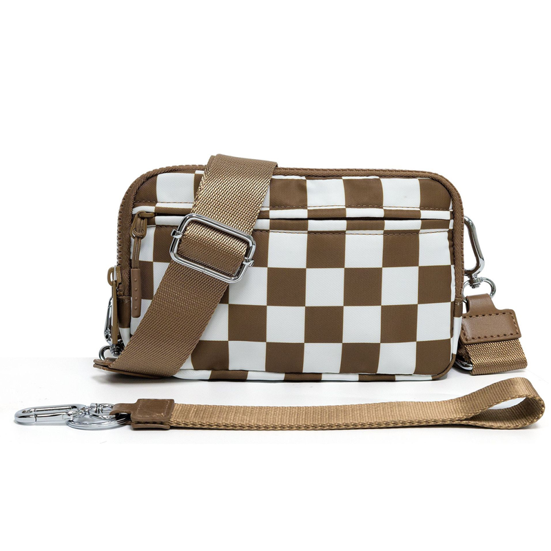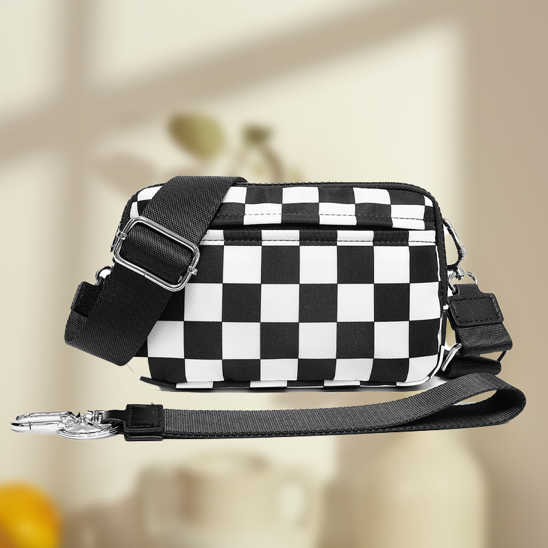 СТИЛЕН ДИЗАЙН – Дръзкият кариран мотив на тази чанта придава модерен и стилен акцент на вашия външен вид. Независимо дали сте облечени небрежно или по-официално, тази чанта за кръста се съчетава с широк спектър от тоалети. Тя е идеалният аксесоар за тези, които искат да останат стилни, докато се наслаждават на практичната й употреба.