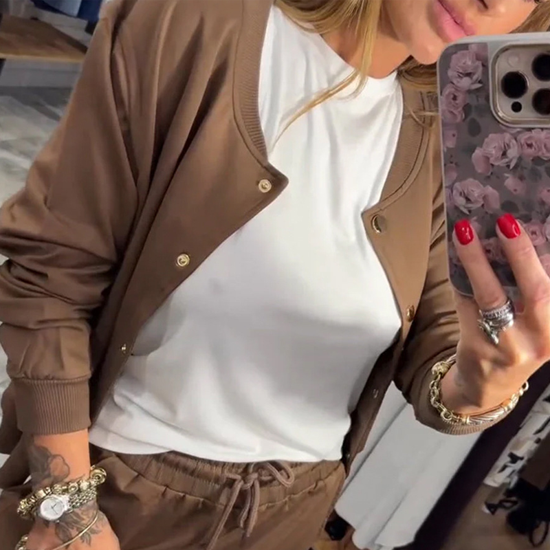 1 * Дамска ежедневна блуза с обло деколте и яке, комплект от две части