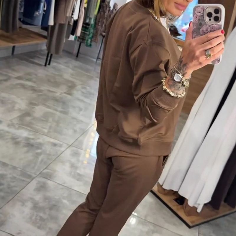 🧥Дамски комплект от две части: суитшърт с обло деколте и яке