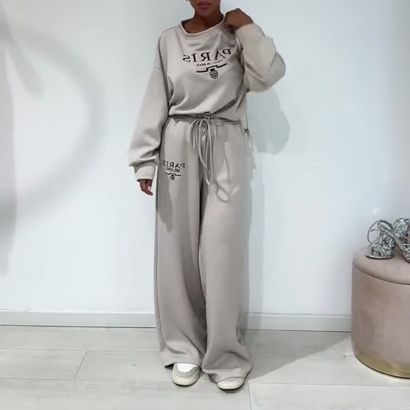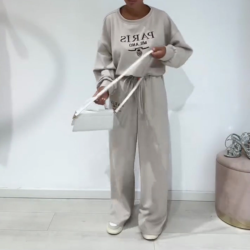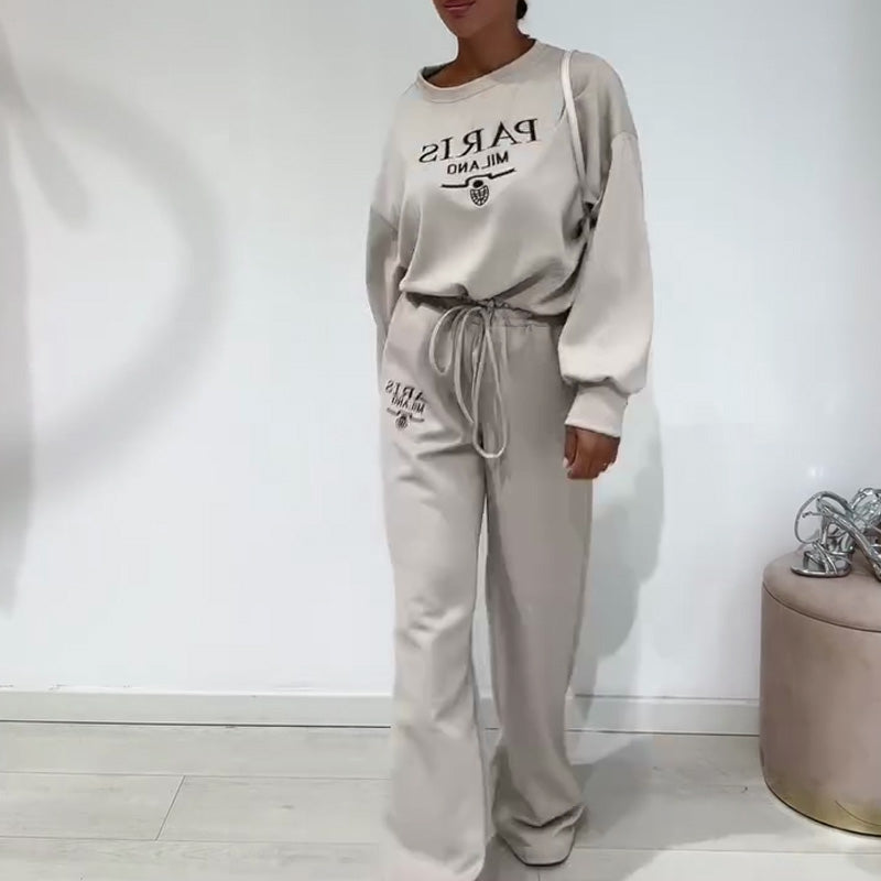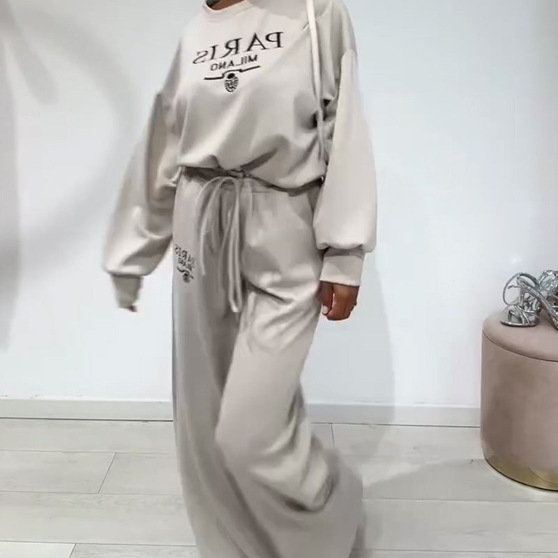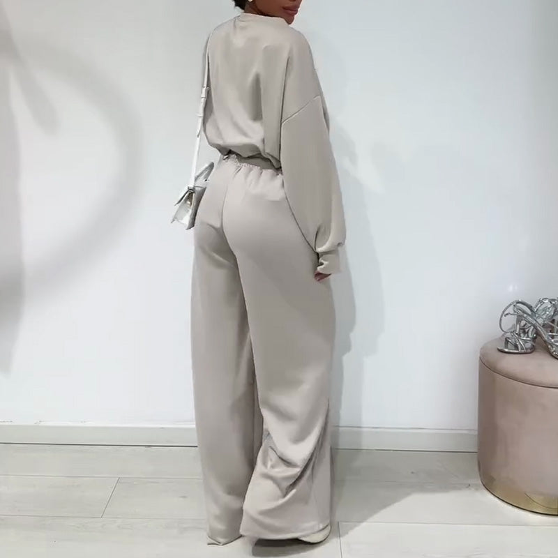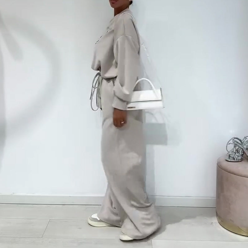 БЕЗУПРЕЧЕН СТИЛ ЗА ВСЕКИ ДЕН – Създаден за съвременен комфорт и простота, този комплект от блуза и панталони съчетава непринудена кройка с елегантна силует, създавайки универсален вид за отдих, поръчки или неформални излизания.