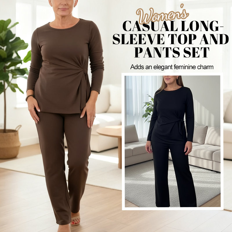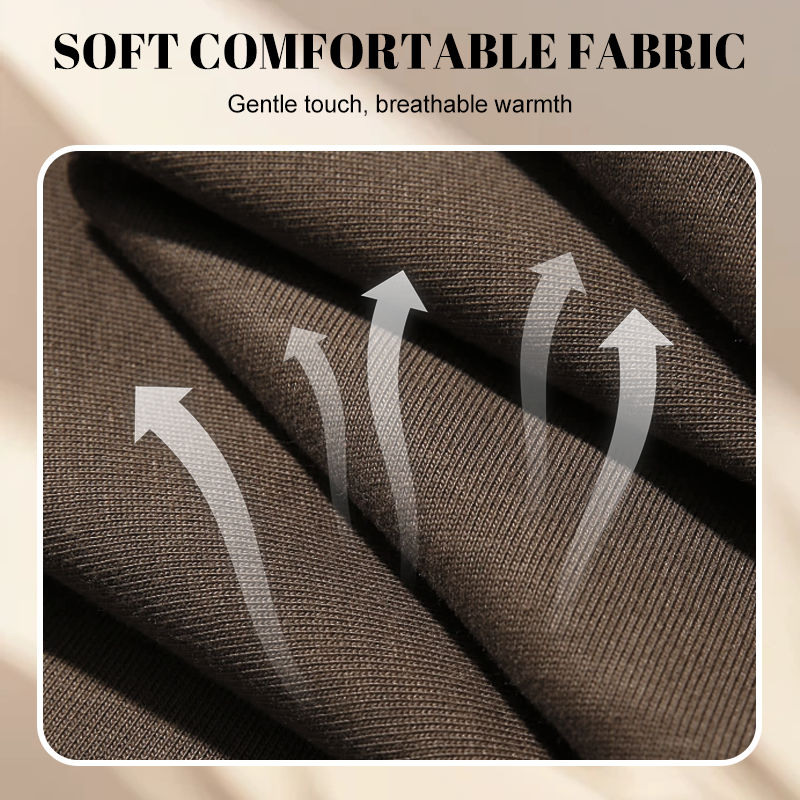 ДЪЛГИ РЪКАВИ – Дългите ръкави осигуряват топлина и нежно покритие с удобно и дишащо усещане. Леко разкроената кройка позволява свобода на движението за отдих, леки упражнения или поръчки. Материята пада естествено по ръцете, без да стяга. Дължината на ръкавите добавя уютен и изтънчен акцент, което прави този комплект идеален за всички сезони, носен самостоятелно или в комбинация с други дрехи.