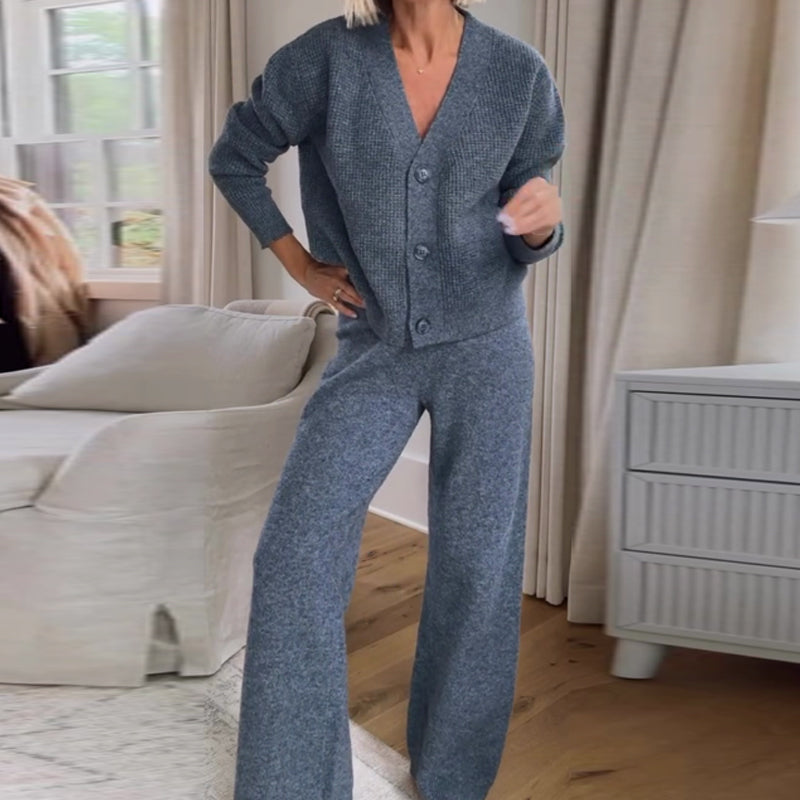 Включено в комплекта: 1 * Дамски удобен кардиган с V-образно деколте и панталони, комплект от две части