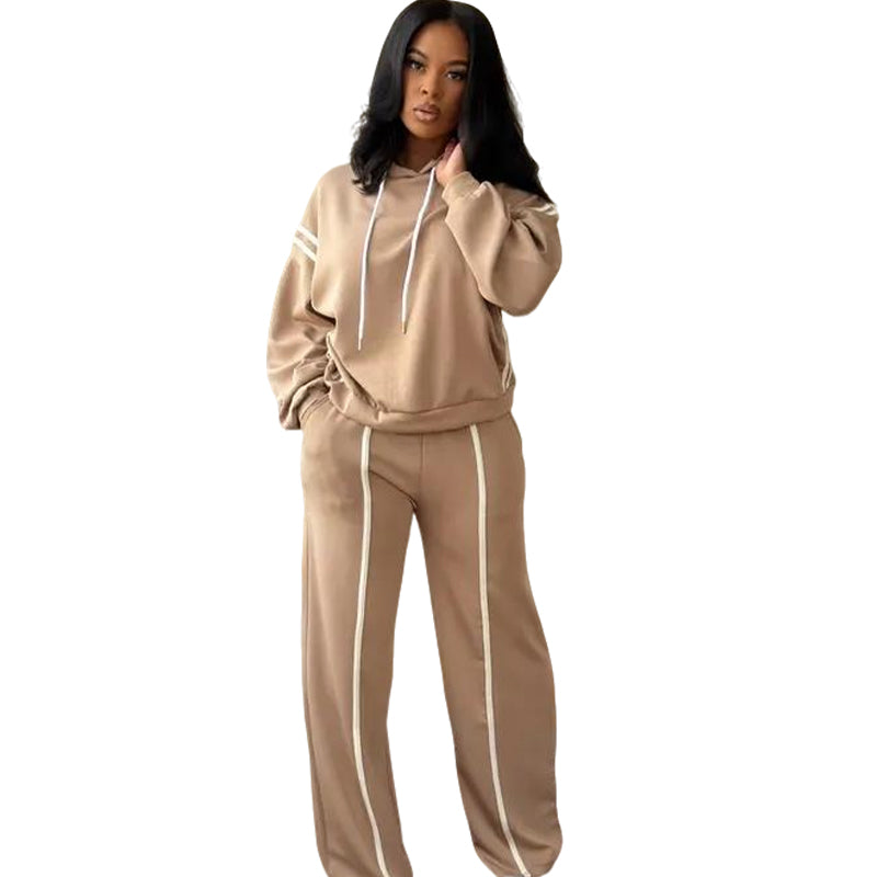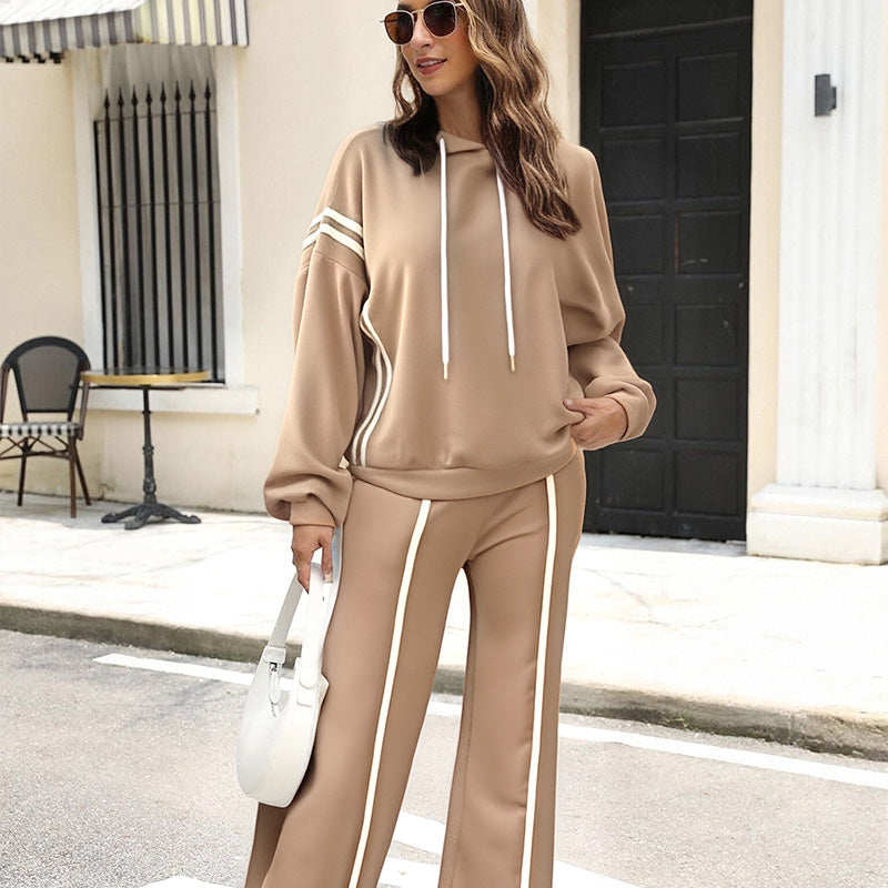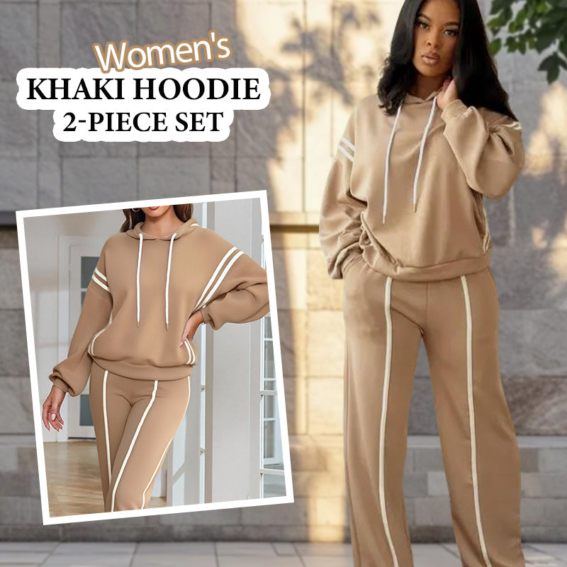 ШИКОВЕН ДИЗАЙН ЗА СПОРТНО-ЕЖЕДНЕВНО НОСЕНЕ – Класическите бели ивици подчертават богатата каки цвят на плата, създавайки елегантна, спортна силует. Идеален за вършене на поръчки, неформални брънчове или пътуване със стил, този комплект съчетава безпроблемно мода и функционалност.