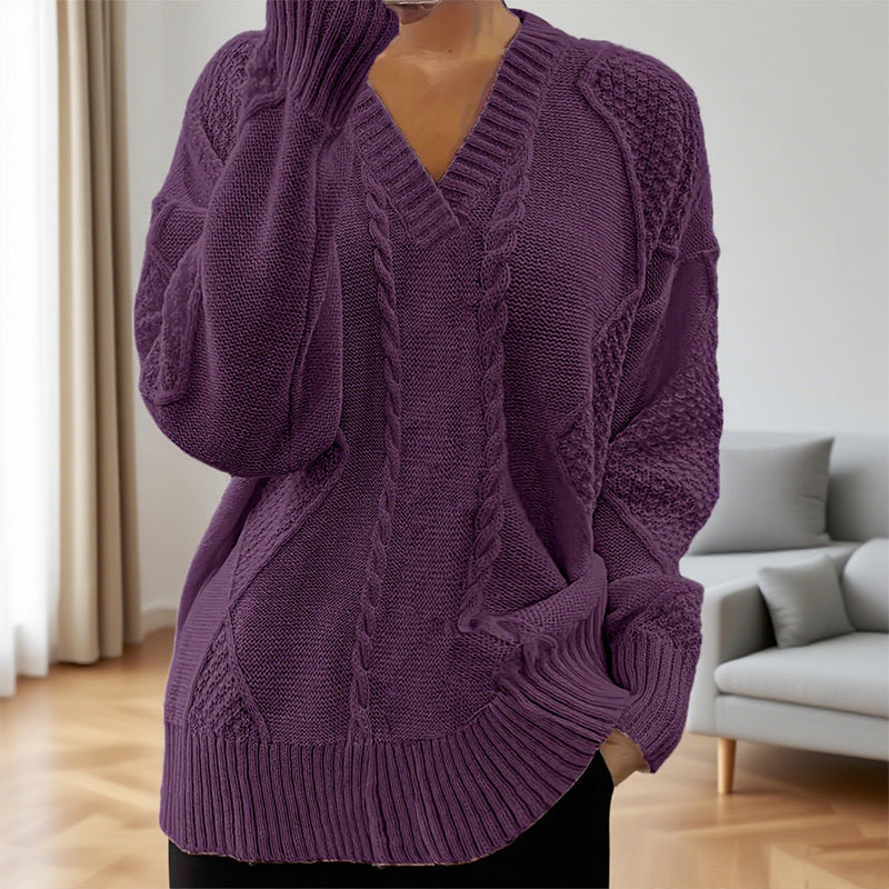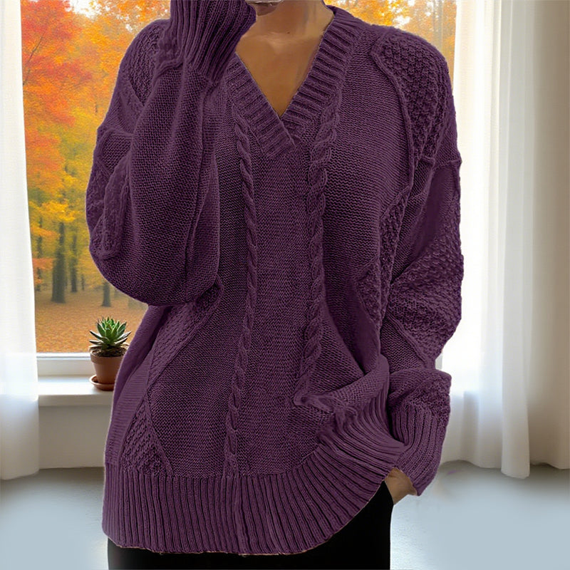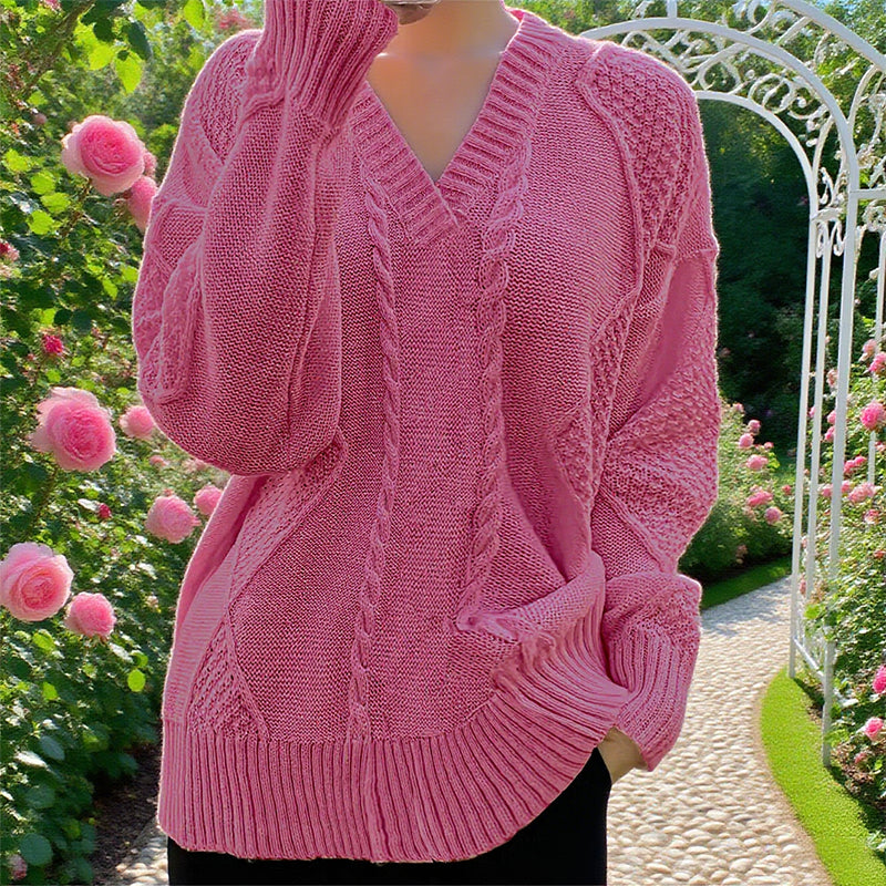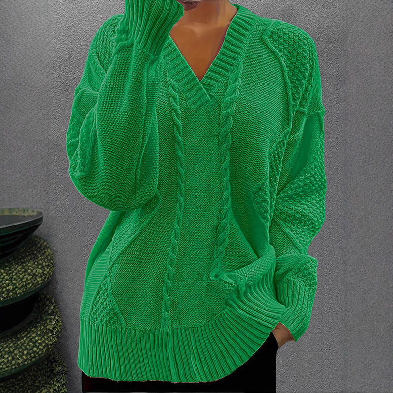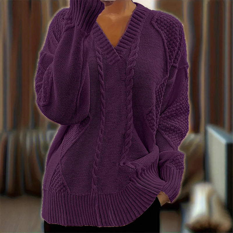 🍂Дамски пуловер с дълъг ръкав и V-образно деколте